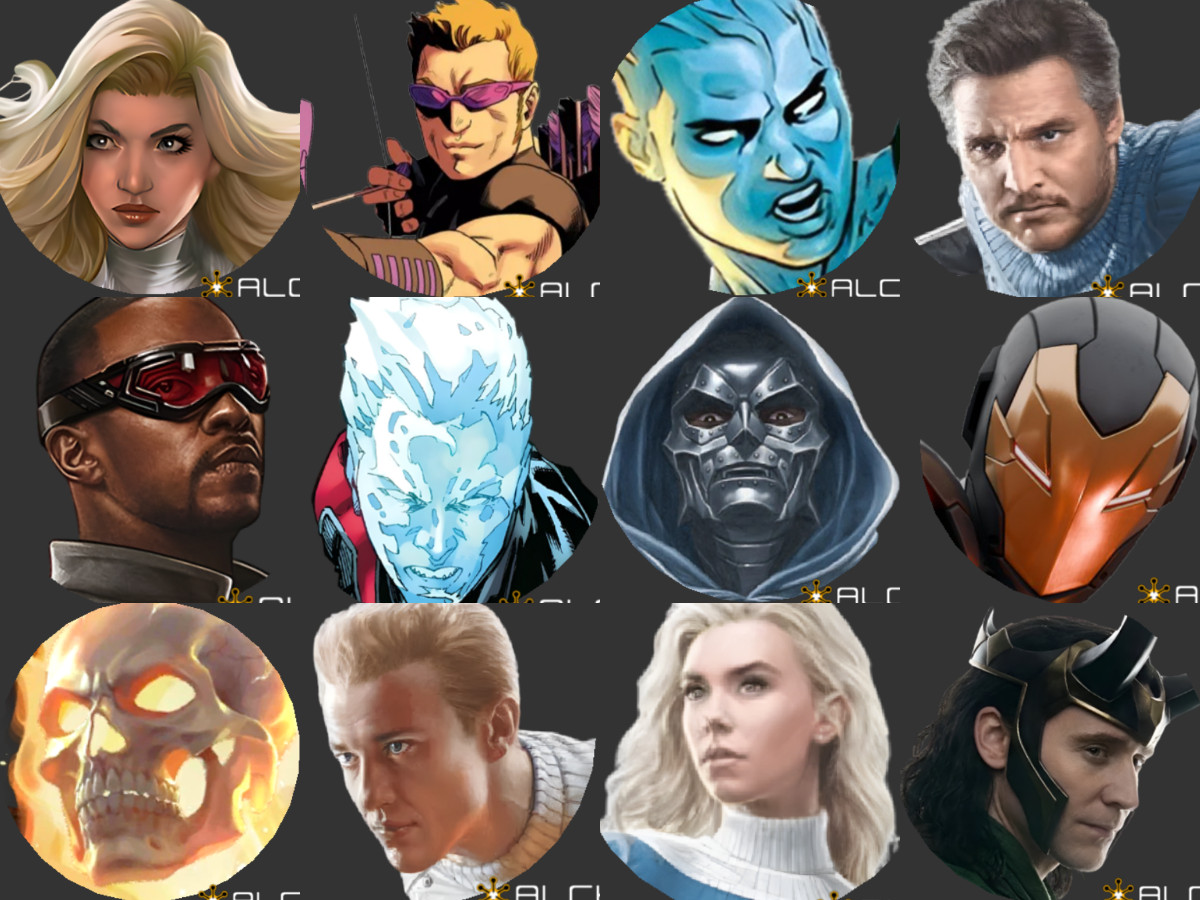Spider-Man, Blade, Vision, Green Goblin, Elektra, Daredevil, Jean Grey, Cyclops, Ultron, Iceman, Ghost Rider, Human Torch
