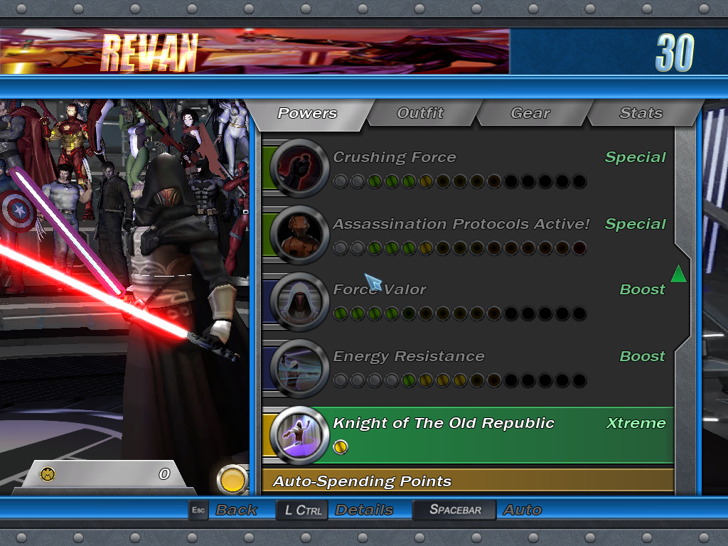 Revan was one of the first movesets I posted to MarvelMods' moveset contribution thread back when I first became invested in Ultimate Alliance's modding community. So now that I'm a full-fledged modder, I figured who better to make than one of the characters that inspired me to want to mod in the first place! Inspired chiefly from the powers and animations of the original Knights of The Old Republic and The Old Republic games, this take on the popular Jedi and Sith Lord aims to represent the feel and fun of those original titles, featuring: